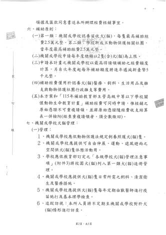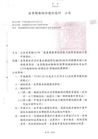 公告 苗栗縣115年「推廣機關學校認養犬貓專案補助計畫申請須知」