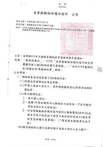 ★本補助自115年1月1日至10月31日或經費用罄止 如有相關問題請於上班時間撥打037-320049分機213謝承辦