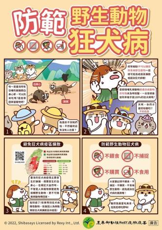 呼籲民眾遵守「二不一要」:不棄養犬貓寵物、不接觸或捕捉野生動物、要每年帶家中犬貓施打狂犬病疫苗,即可避免狂犬病在人與動物間傳播。若民眾不慎遭野生動物或遊蕩犬貓抓咬傷,應立即以肥皂及大量清水沖洗傷口15分鐘,再以優碘或70%酒精消毒,並儘速就醫,同時通報動防所後續處理。
